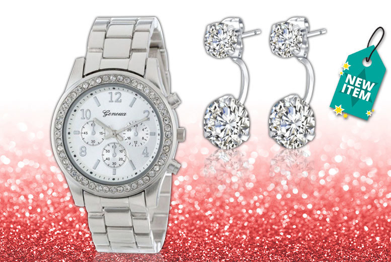 Get a Boyfriend watch and double-drop earrings set! Stylish silver watch with chronograph dial. Three sub dials and numbered markers. With crystals circumventing the watch face. Plus a pair of crystal double-drop earrings! The perfect way to cap off a stylish outfit.5 days, 3 hours left Now: €13.00 Was: €122.00