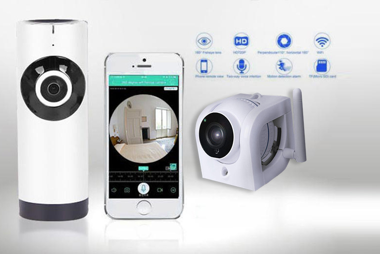 Get a indoor and outdoor wireless home security camera bundle. 720p HD 1.3MP high-resolution outdoor camera. And indoor camera with fisheye lens and 180° panoramic view. Sees up to 40-50m in the dark with infrared night vision. Receive instant phone and email notifications when motion is detected. View the camera feed live using the smartphone app.