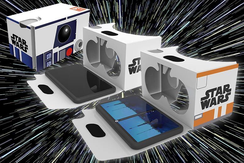 Get a Star Wars cardboard VR headset. Choose from three designs - Stormtrooper, R2-D2 or BB-8. Insert your smart phone for a truly amazing VR experience. Enter virtual worlds, play games and go on wild adventures! 360° viewing and 3D immersion. A perfect Christmas stocking filler for any Star Wars fan.