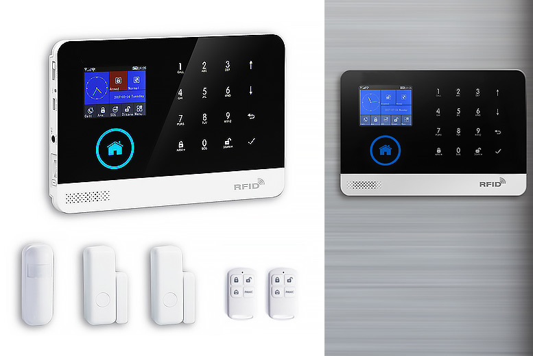Get this top-of-the-range alarm system. Controlled by WiFi. Arm and disarm all with your smartphone! An easy way to keep your home secure! Comes with 2 door/window sensors, 1 PIR (person in room) sensor and 2 wireless remote controls.